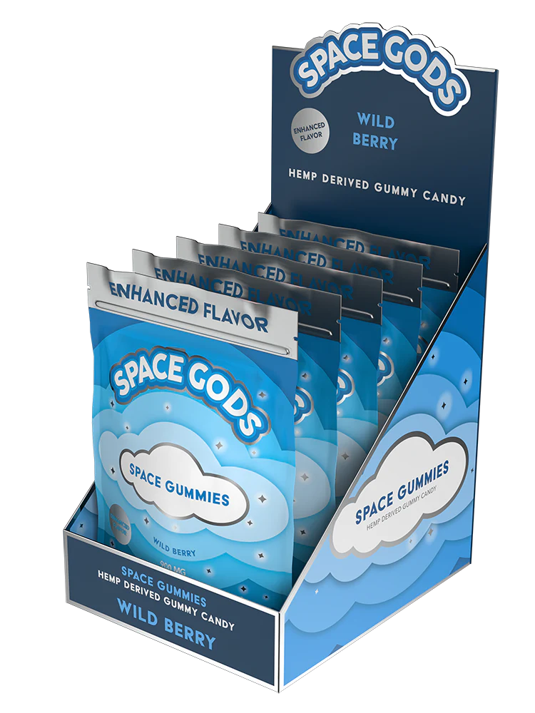 Space Gods produces hemp-derived cannabinoid products, including gummies and vapes, formulated with delta-9 THC and CBD. The company manufactures products using hemp extracts that comply with the federal definition established in the Agriculture Improvement Act of 2018 (commonly called the 2018 Farm Bill), which defined legal hemp as cannabis containing no more than 0.3% delta-9 THC on a dry weight basis.